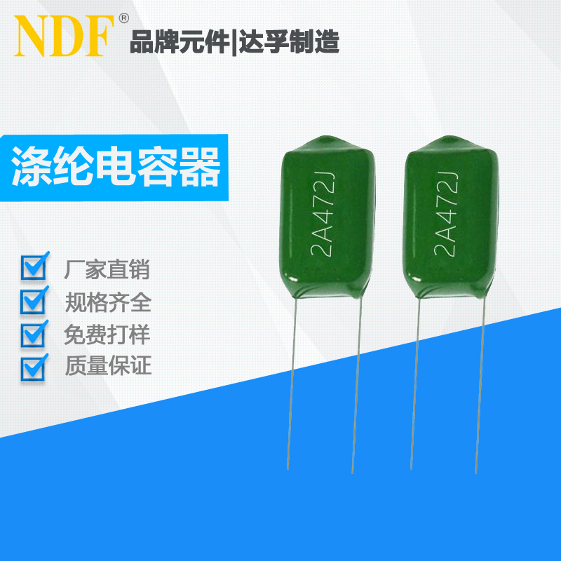滌綸電容器2[**]472J(100V)是指用兩片金屬箔做電極,夾在極薄絕緣介質中,卷成圓柱形或者扁柱形芯子,介質是滌綸,滌綸薄膜電容,介電常數較高,體積小,容量大,穩定性較好,適宜做旁路電容使用。